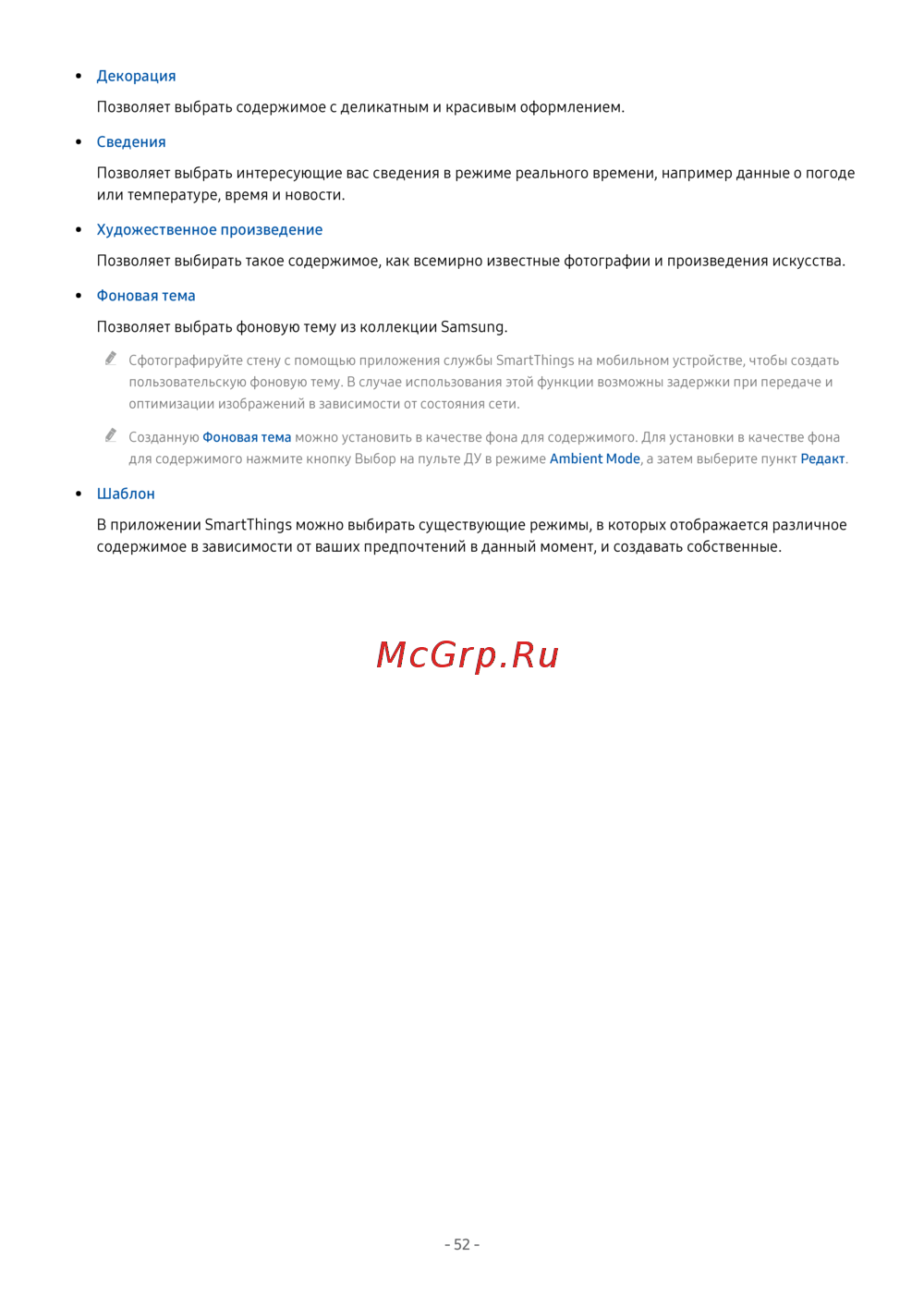 для содержимого нажмите кнопку Выбор на пульте ДУ в режиме Ambient Mode, а затем выберите пункт Редакт.