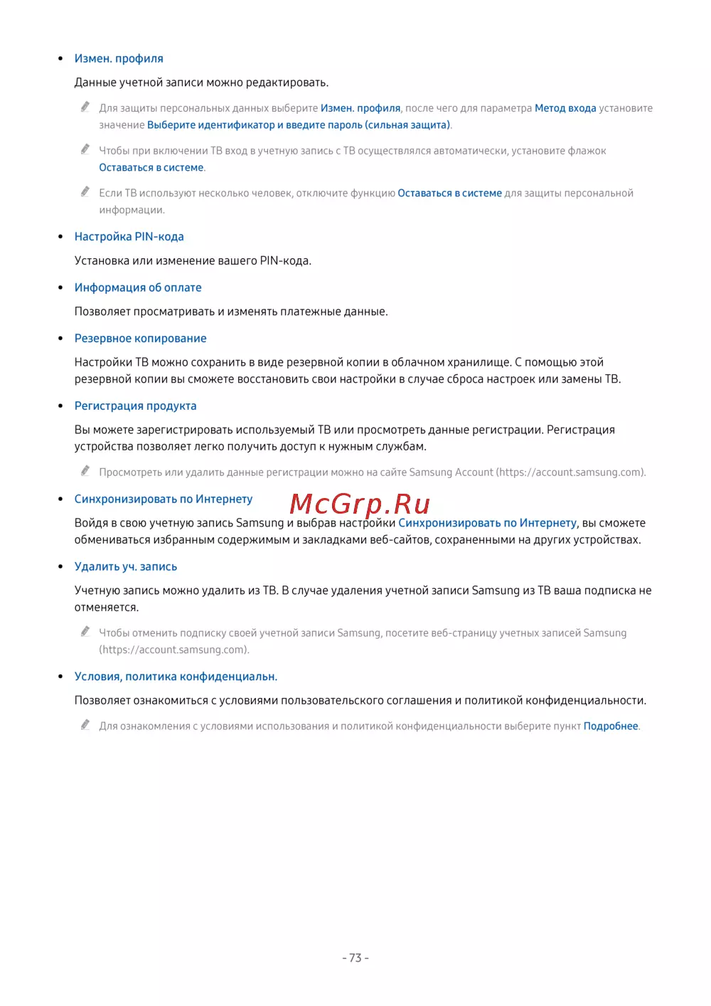 Просмотреть или удалить данные регистрации можно на сайте Samsung Account (https://account.samsung.com).