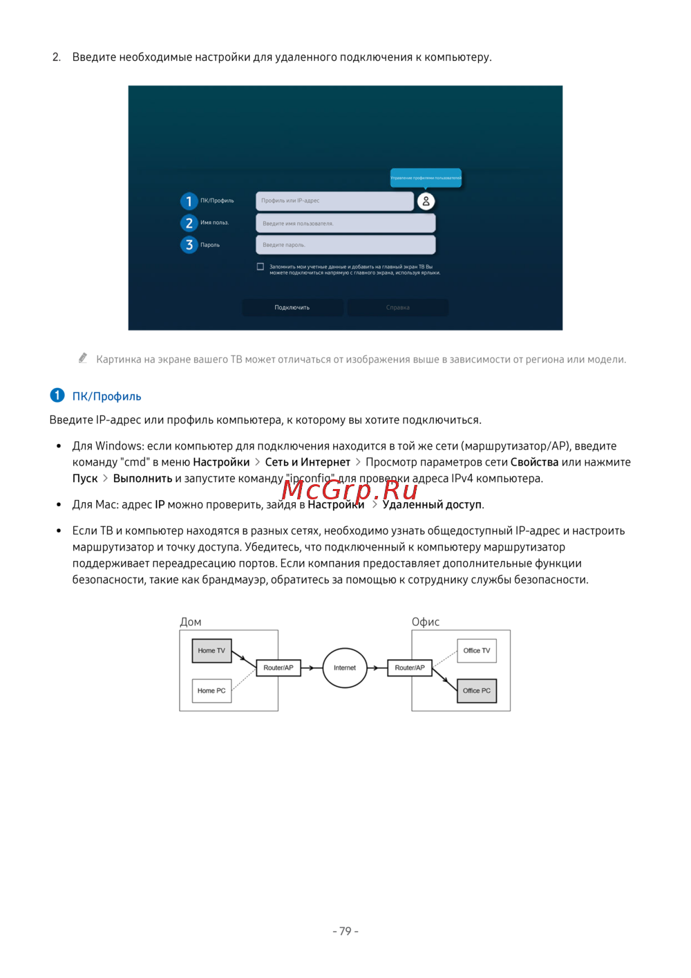• Для Windows: если компьютер для подключения находится в той же сети (маршрутизатор/AP), введите