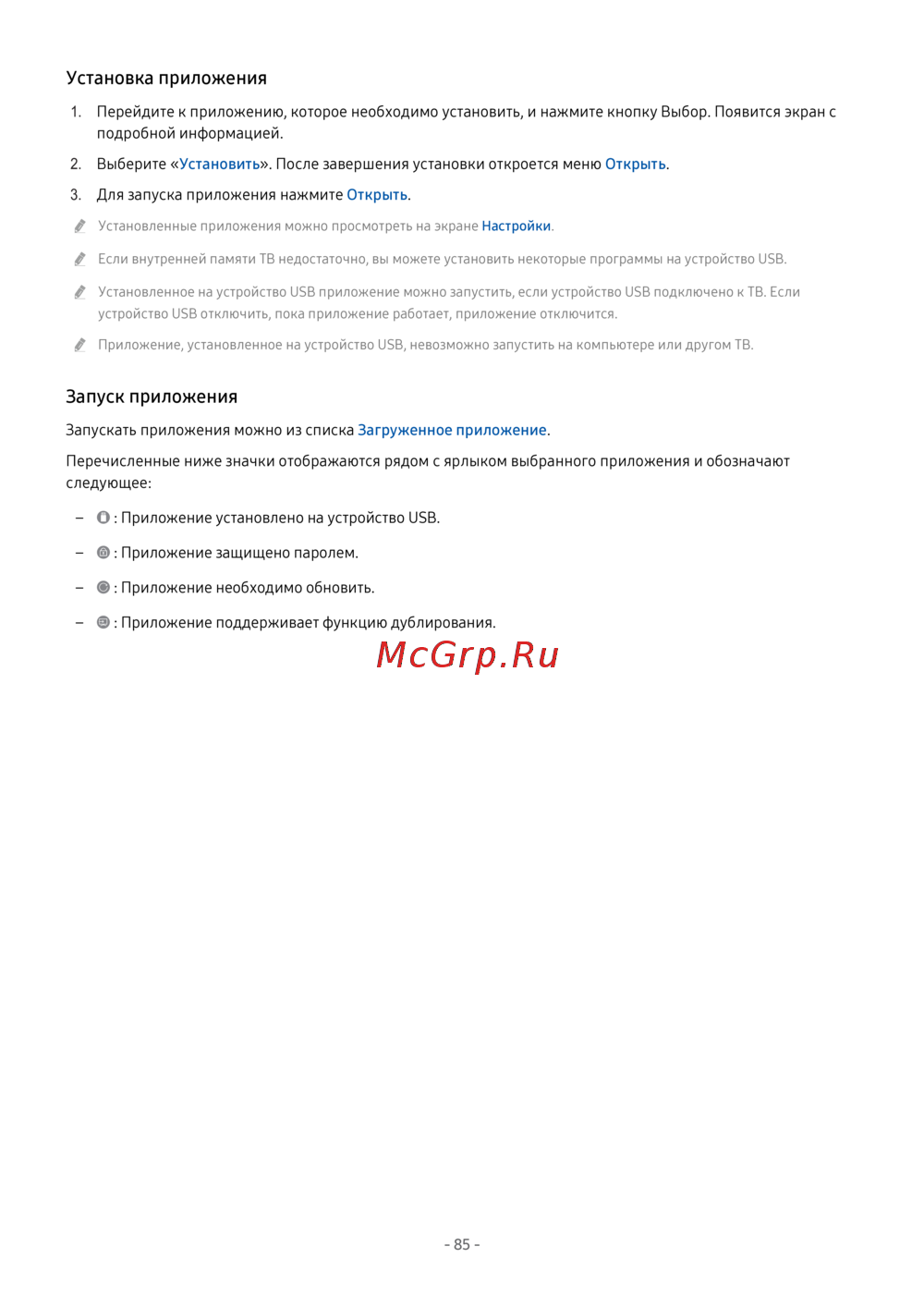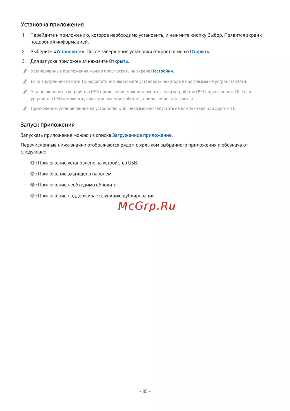 Установленное на устройство USB приложение можно запустить, если устройство USB подключено к ТВ. Если