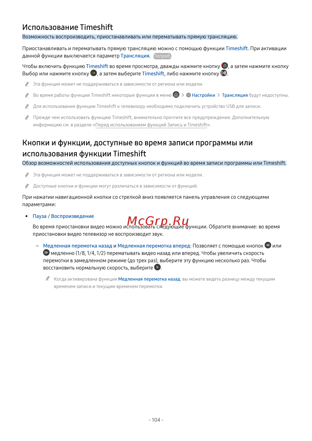 ![Samsung UE65AU7500U [104/264] Кнопки и функции доступные во время записи программы или использования функции timeshift](/views2/2016749/page104/bg68.png)