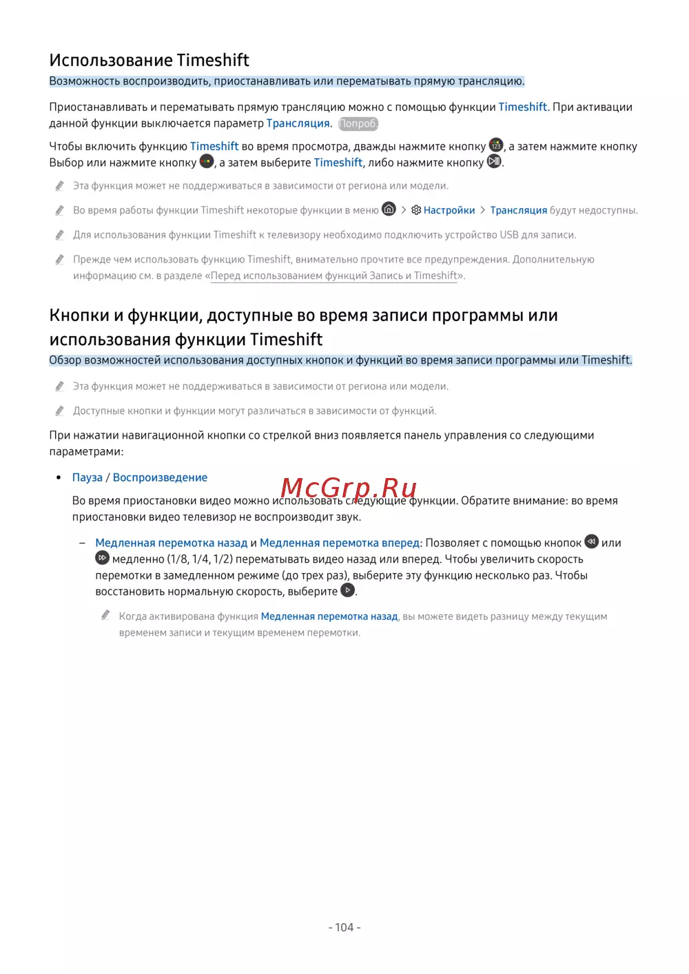 Samsung UE65AU7500U [104/264] Кнопки и функции доступные во время записи программы или использования функции timeshift