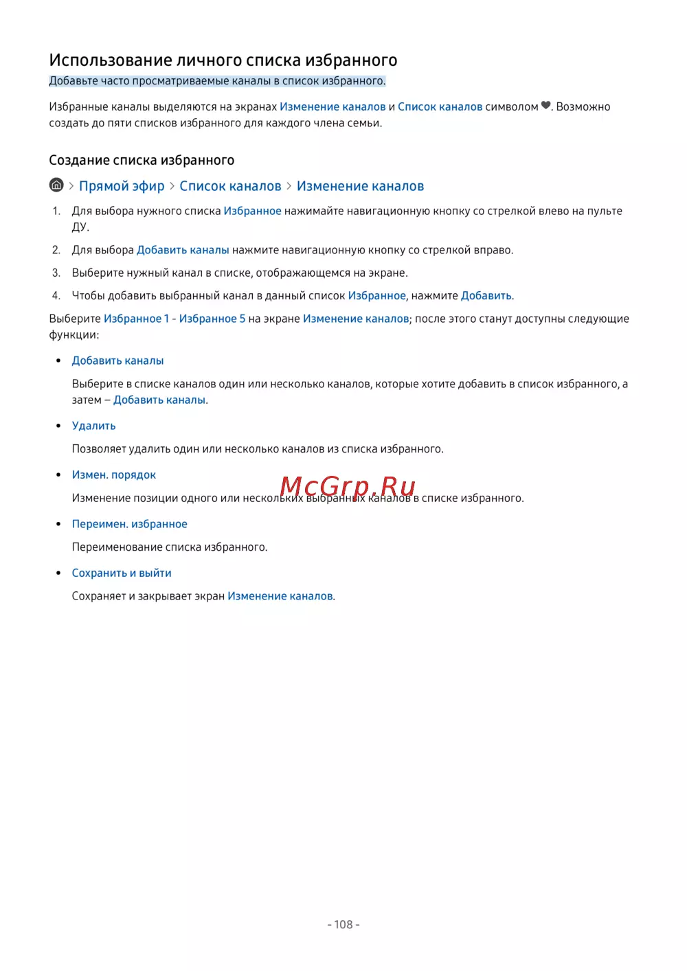 Samsung UE65AU7500U [108/264] Создание списка избранного
