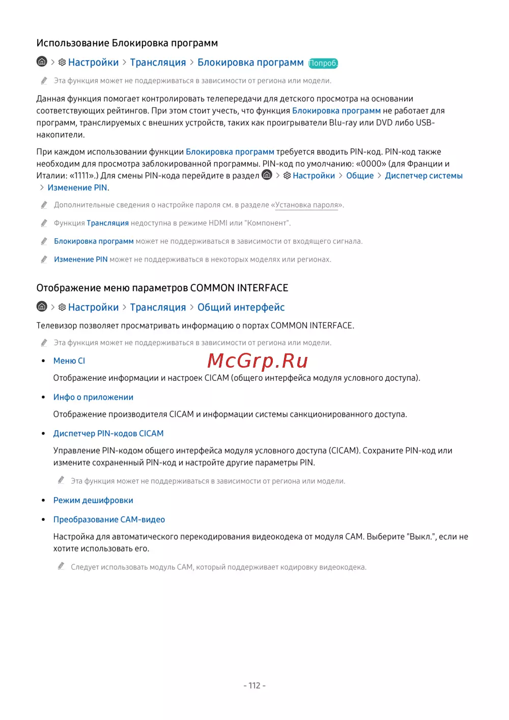 ![Samsung UE65AU7500U [112/264] Отображение меню параметров common interface](/views2/2016749/page112/bg70.png)