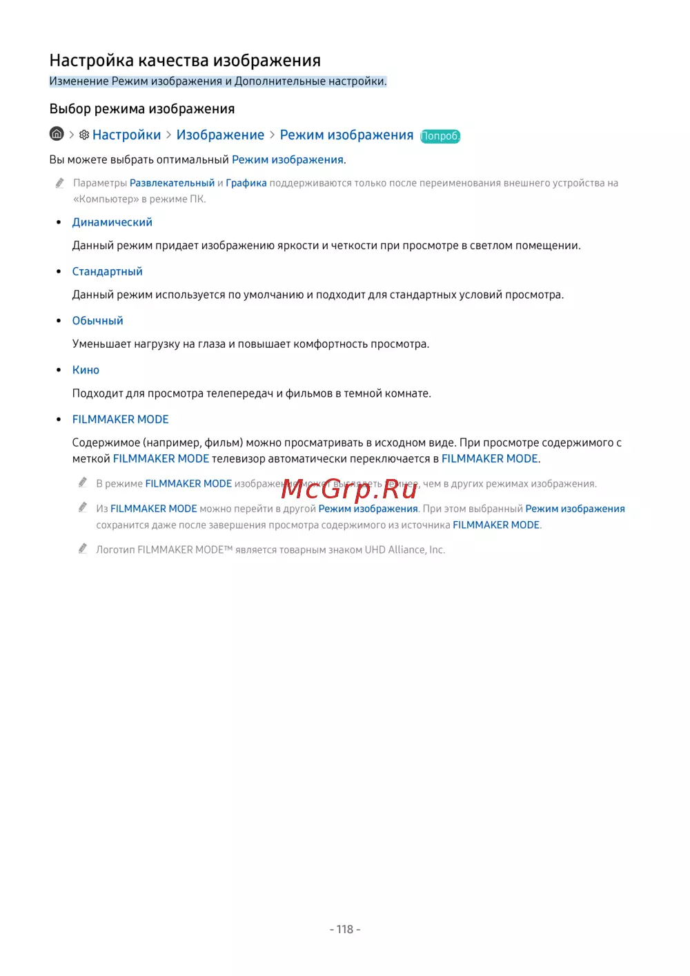Логотип FILMMAKER MODE™ является товарным знаком UHD Alliance, Inc.
