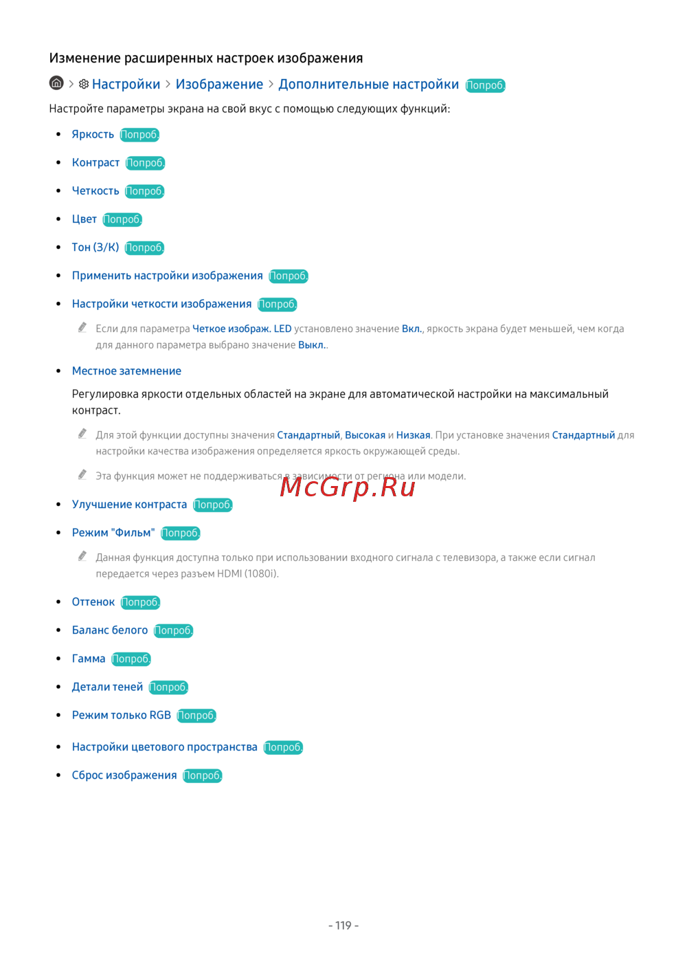![Samsung UE65AU7500U [119/264] Настройки изображение дополнительные настройк](/views2/2016749/page119/bg77.png)