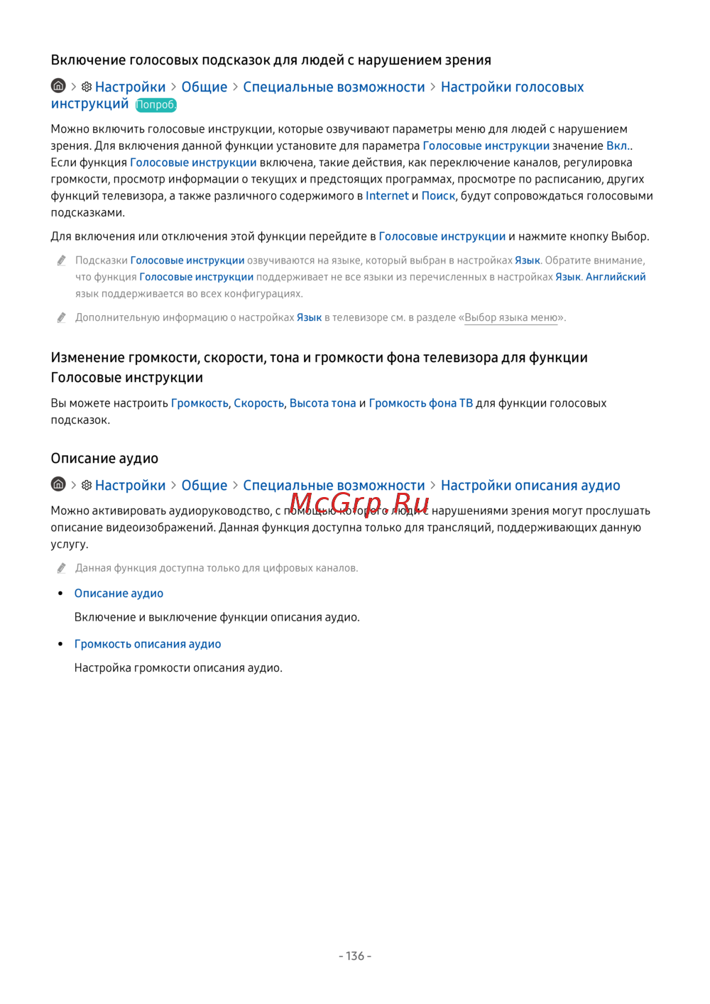 - Работа с телевизором с включенной функцией голосовые инструкции p.247