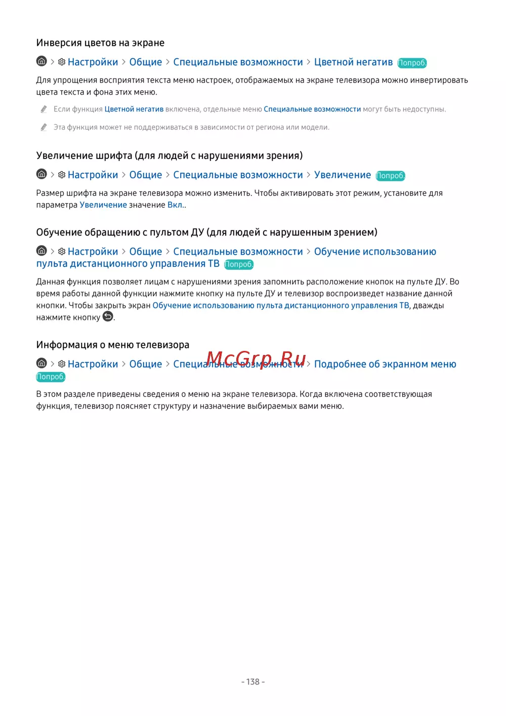 - Работа с телевизором с включенной функцией голосовые инструкции p.247