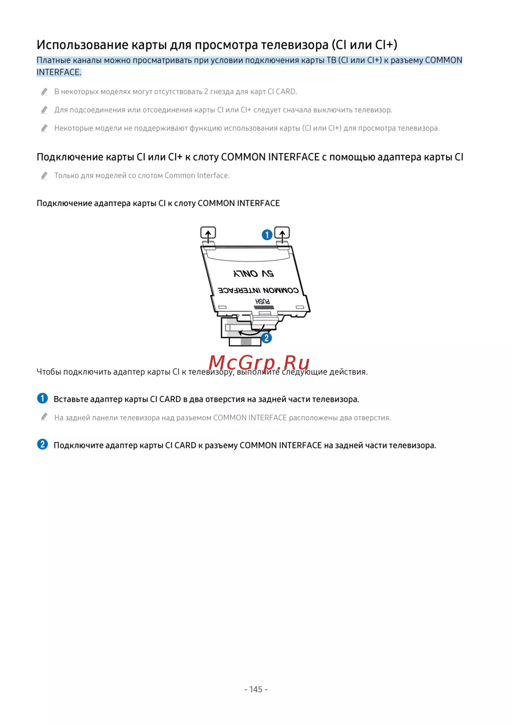 ![Samsung UE65AU7500U [145/264] Подключение карты ci или ci к слоту common interface с помощью адаптера карты ci](/views2/2016749/page145/bg91.png)