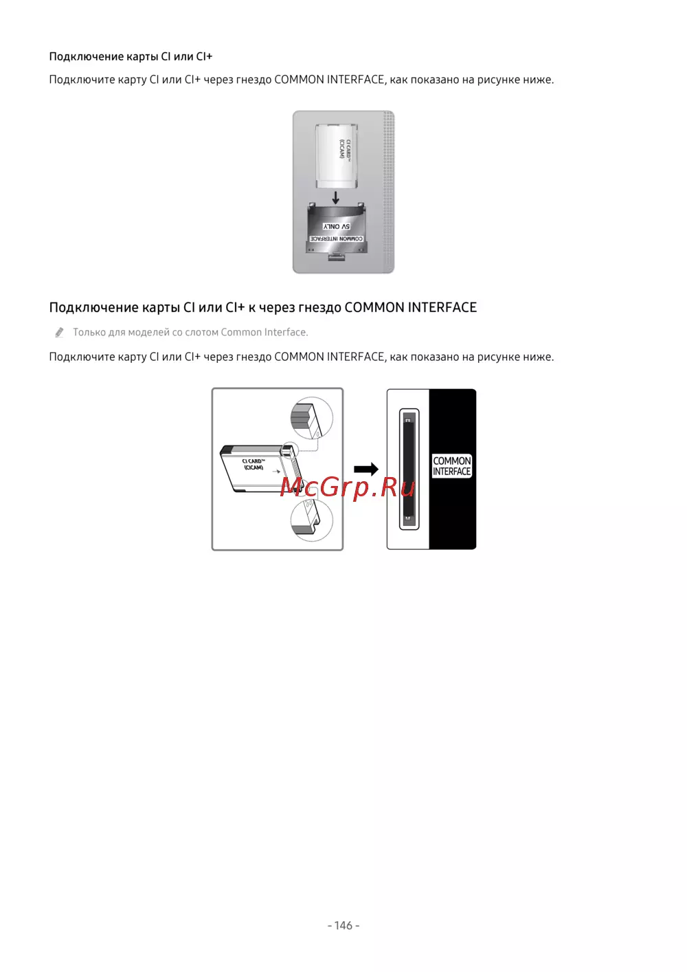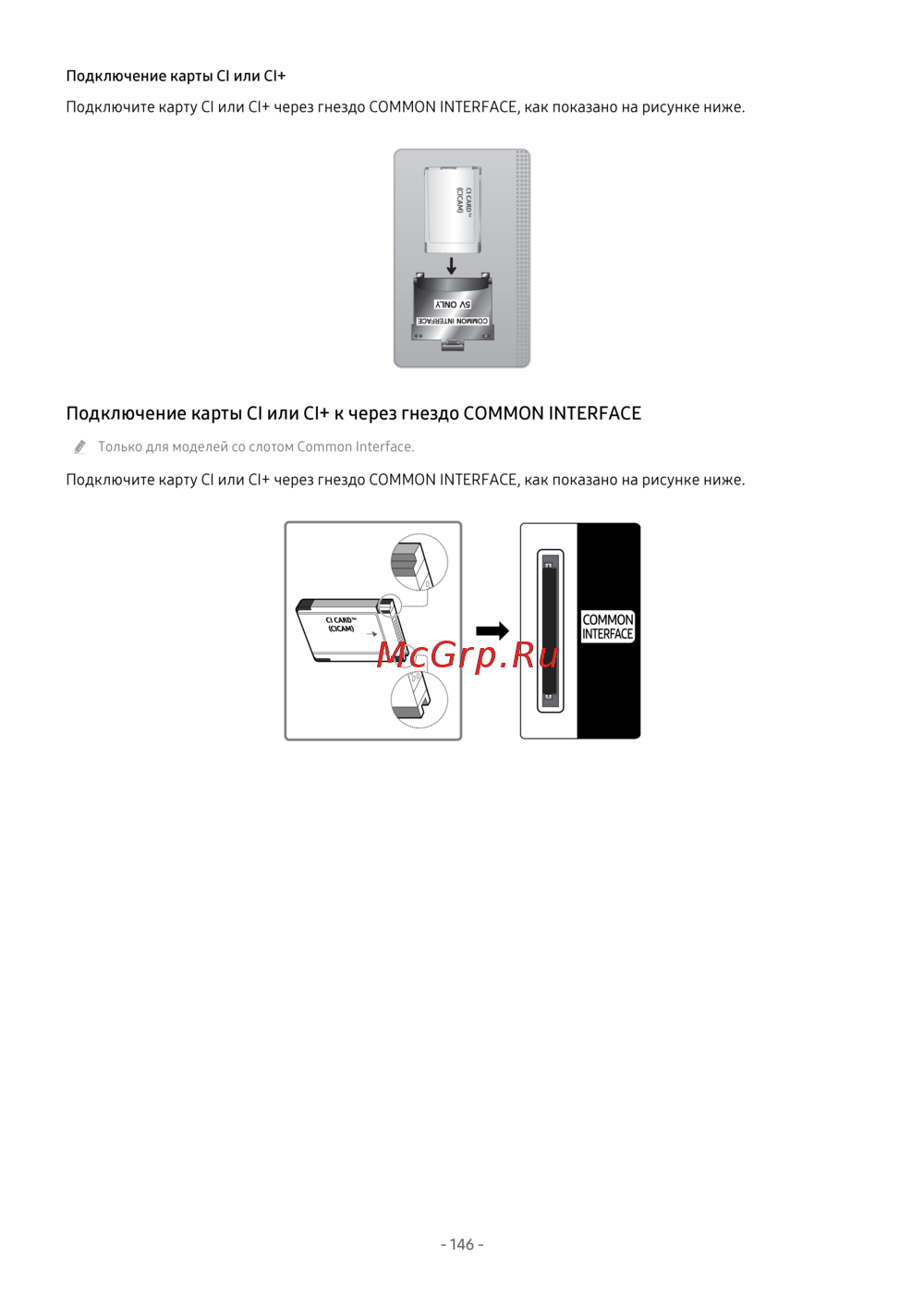Samsung UE65AU7500U [146/264] Подключение карты ci или ci к через гнездо common interface