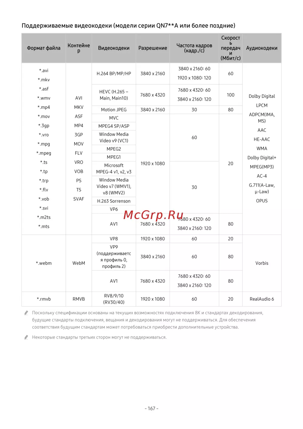 ![Samsung UE65AU7500U [167/264] Формат файла контейне](/views2/2016749/page167/bga7.png)