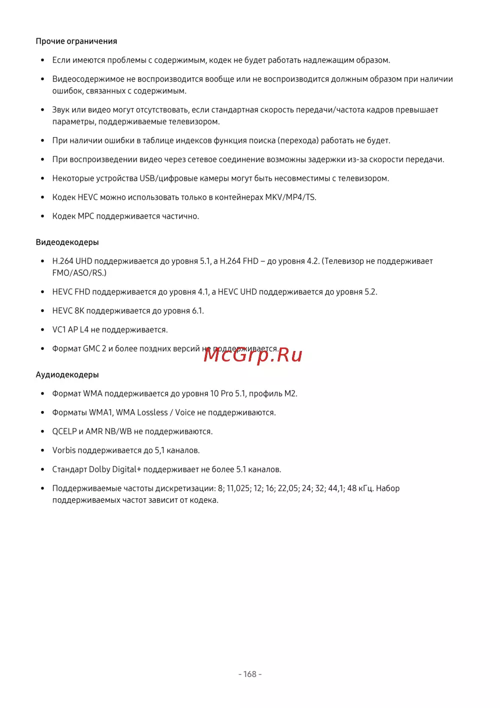 • H.264 UHD поддерживается до уровня 5.1, а H.264 FHD – до уровня 4.2. (Телевизор не поддерживает