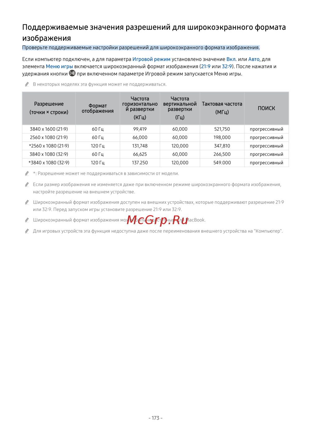 2560 x 1080 (21:9) 60 Гц 66,000 60,000 198,000 прогрессивный
