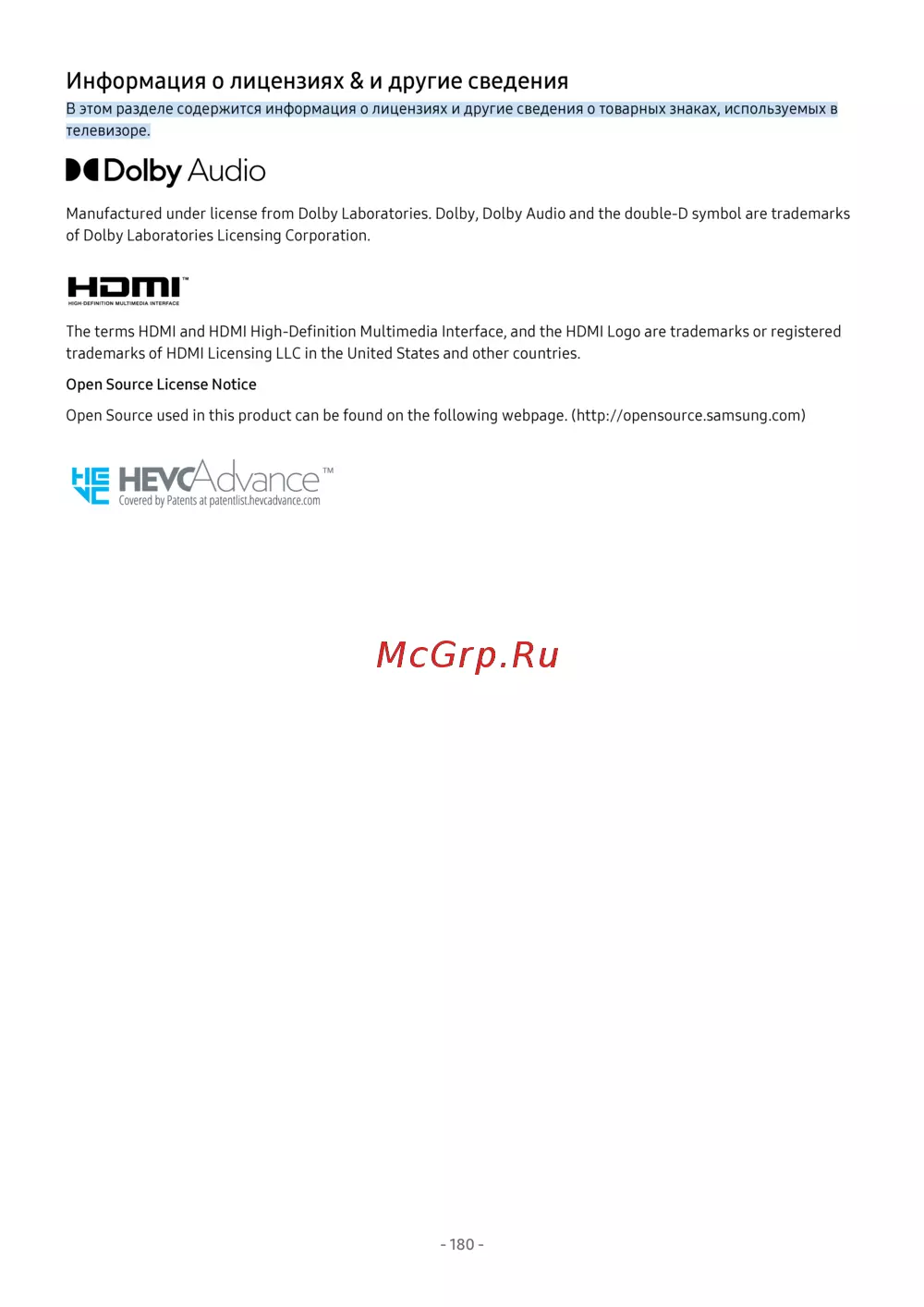 ![Samsung UE65AU7500U [180/264] Информация о лицензиях и другие сведения](/views2/2016749/page180/bgb4.png)