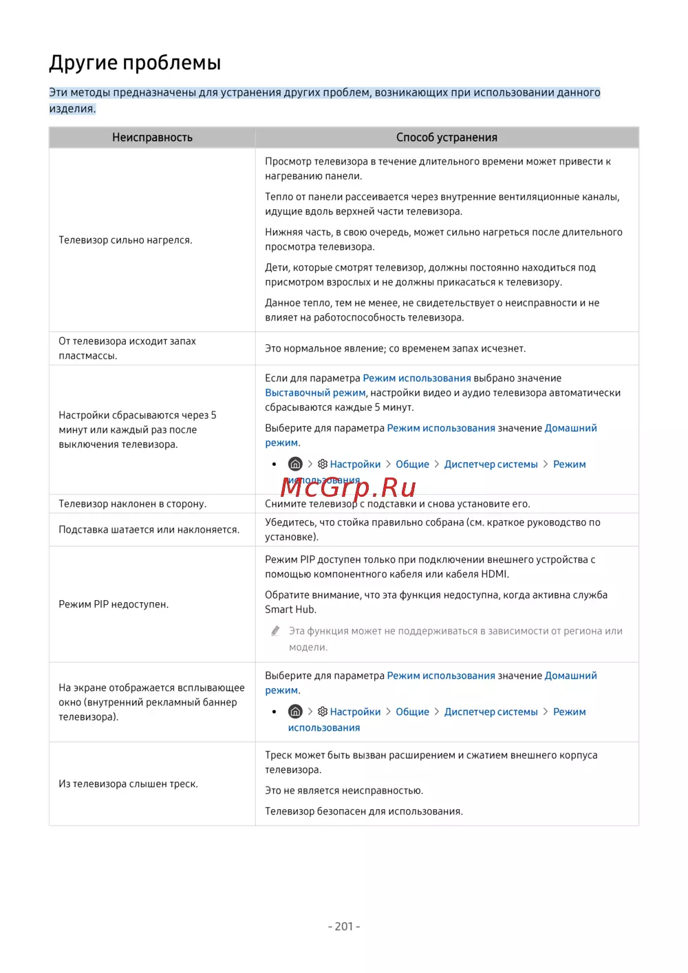 Samsung UE65AU7500U [201/264] Эти методы предназначены для устранения других проблем возникающих при использовании данного изделия
