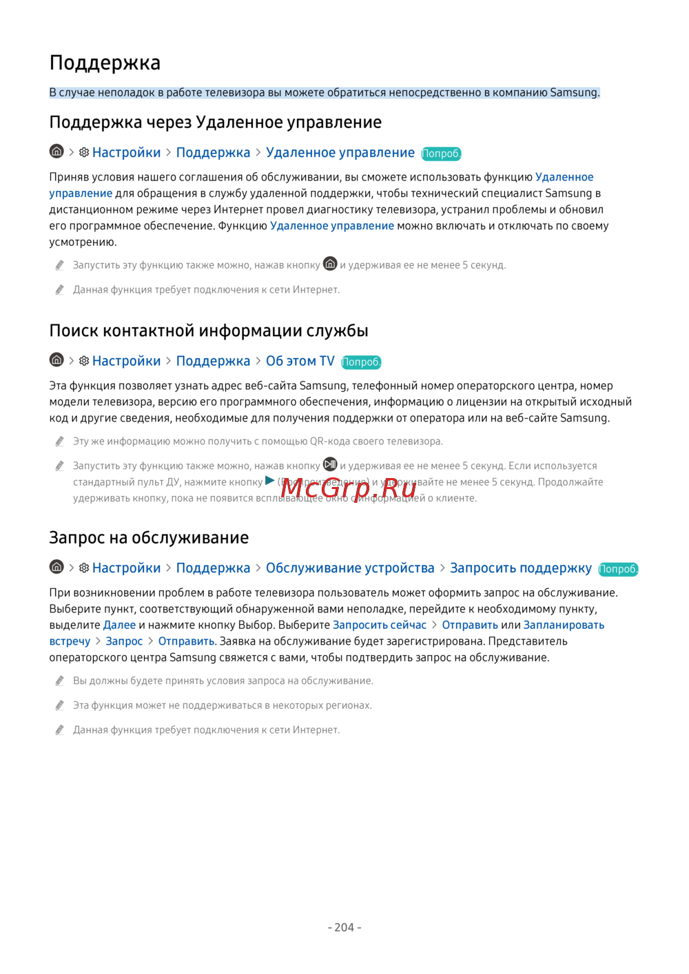управление для обращения в службу удаленной поддержки, чтобы технический специалист Samsung в