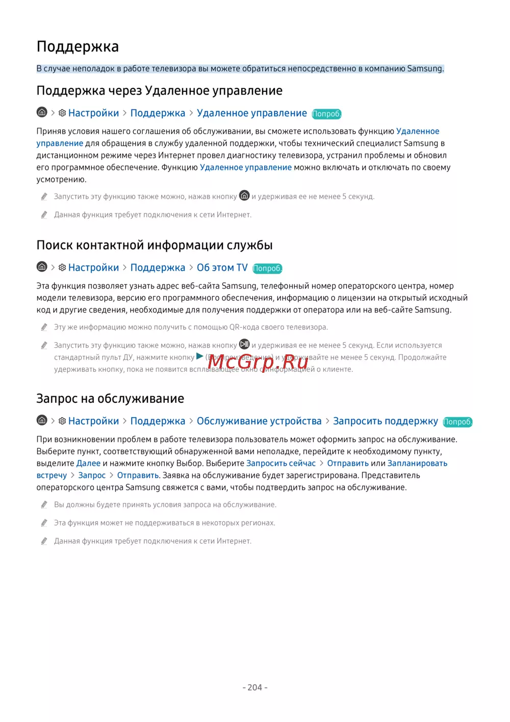 - Настройки поддержка обслуживание устройства запросить поддержк p.204