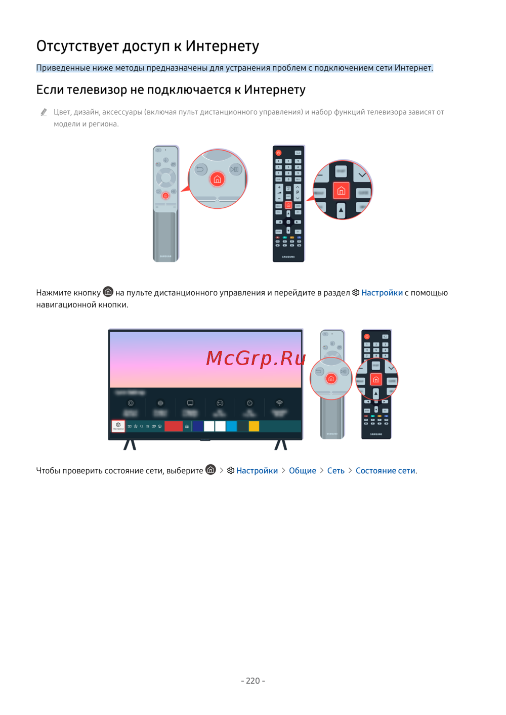 Samsung UE65AU7500U [220/264] Отсутствует доступ к интернету