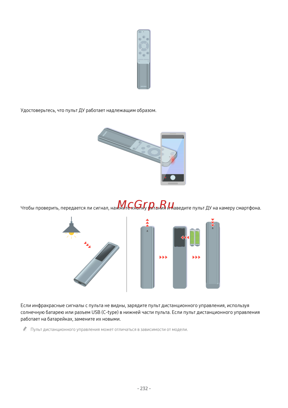 - Пульт дистанционного управления не работает p.231