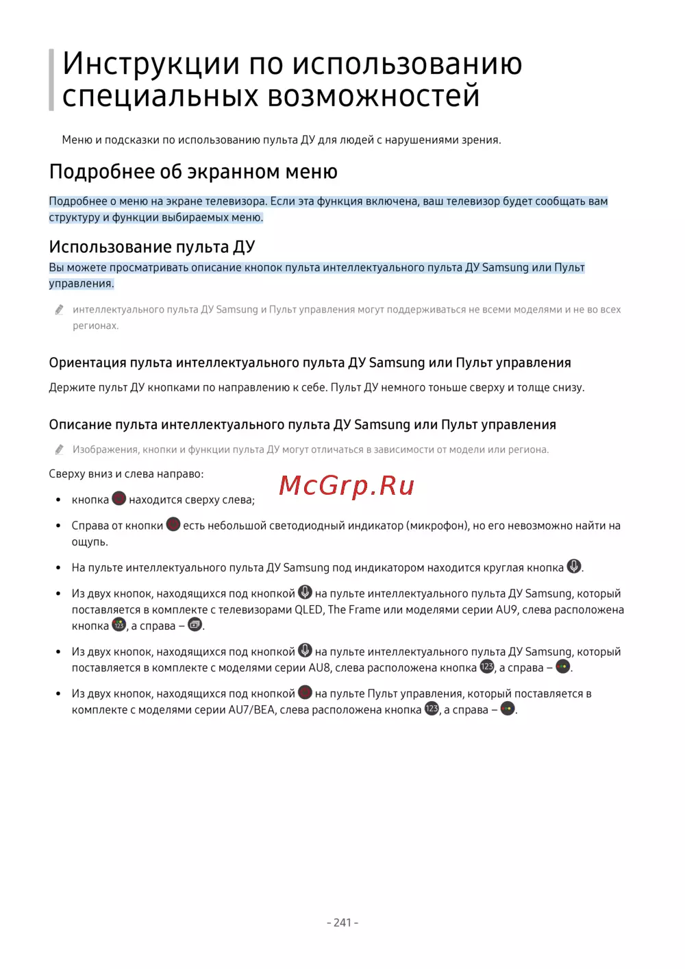- Описание пульта интеллектуального пульта ду samsung или пульт управления p.241