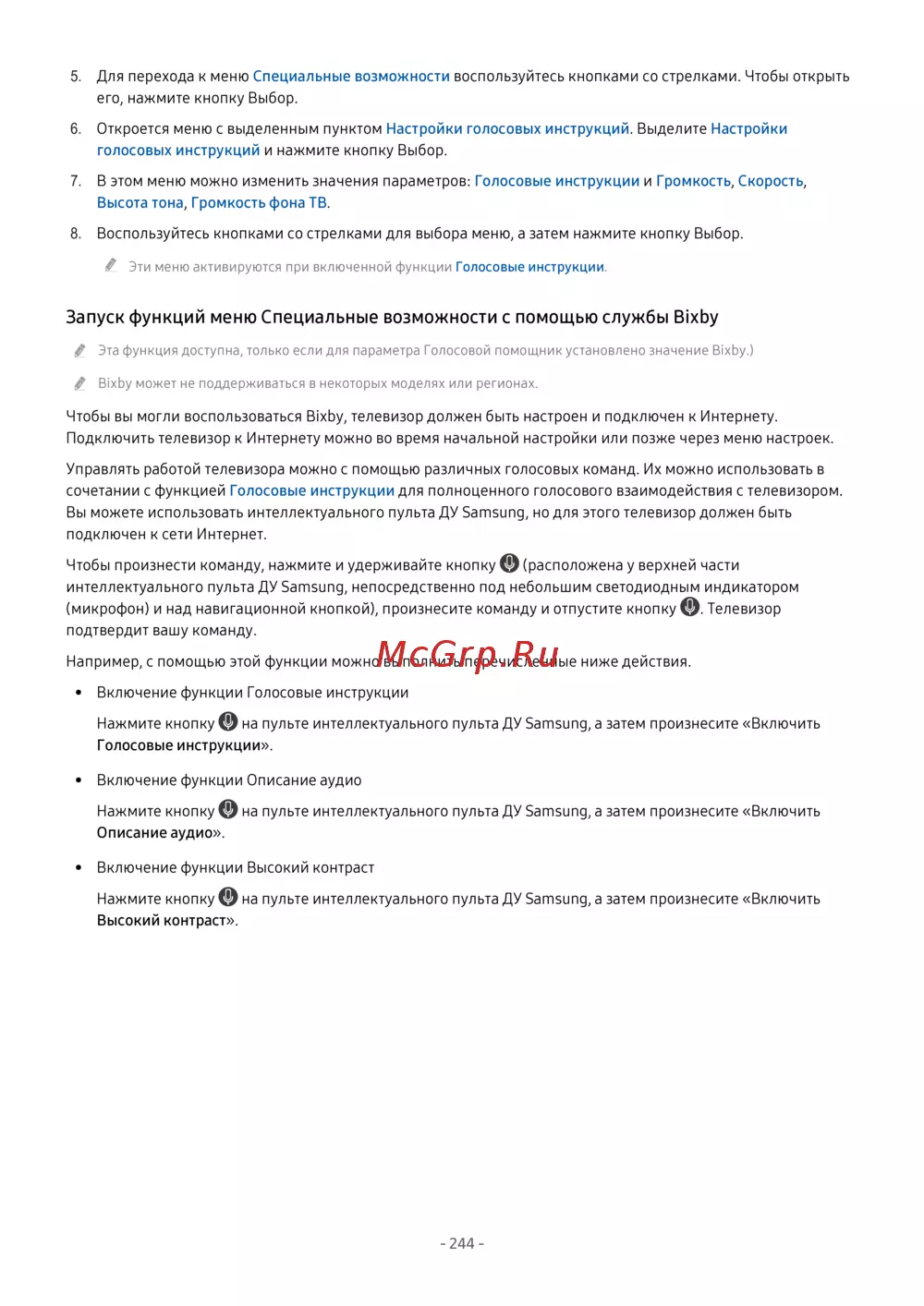 - Работа с телевизором с включенной функцией голосовые инструкции p.247