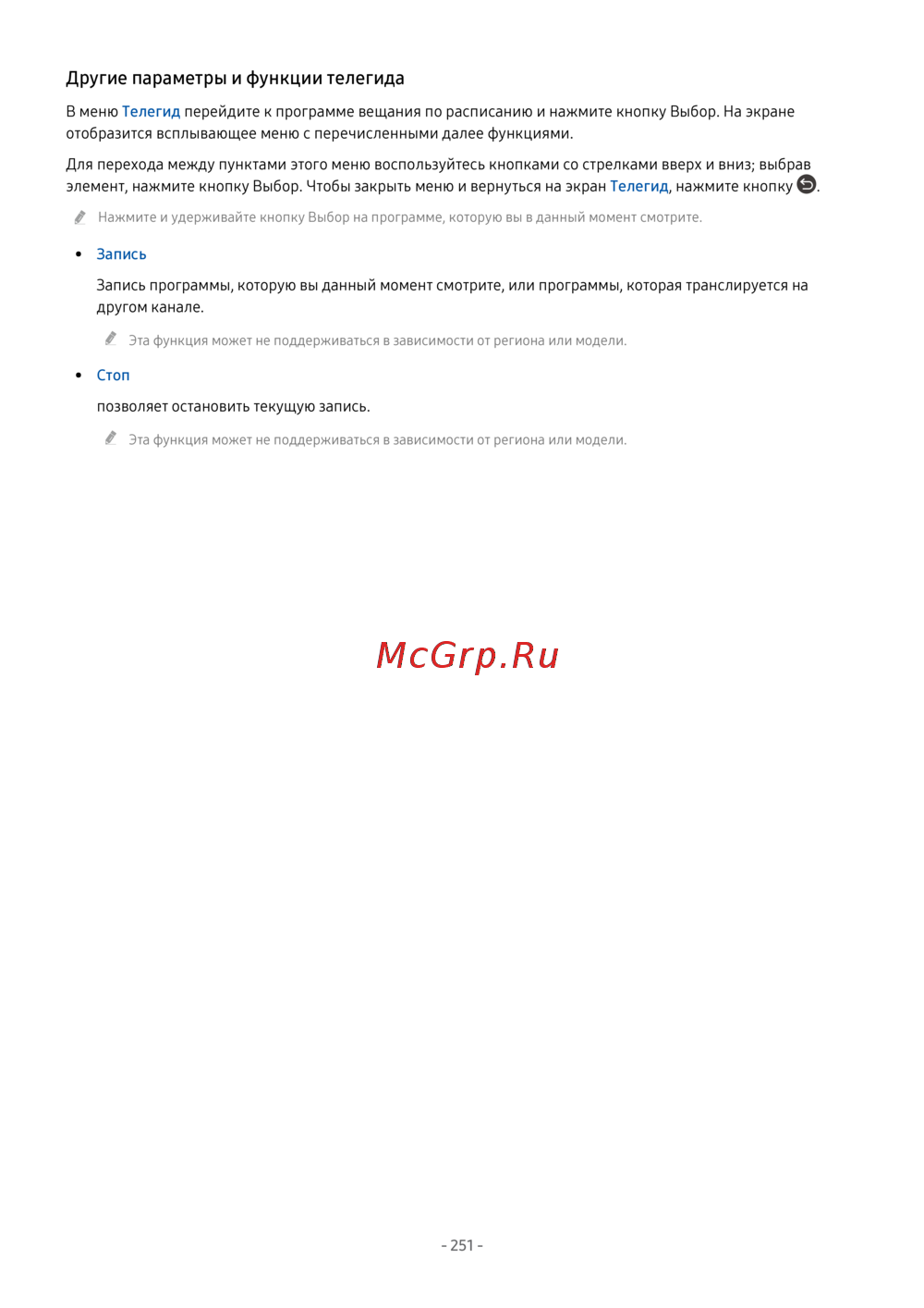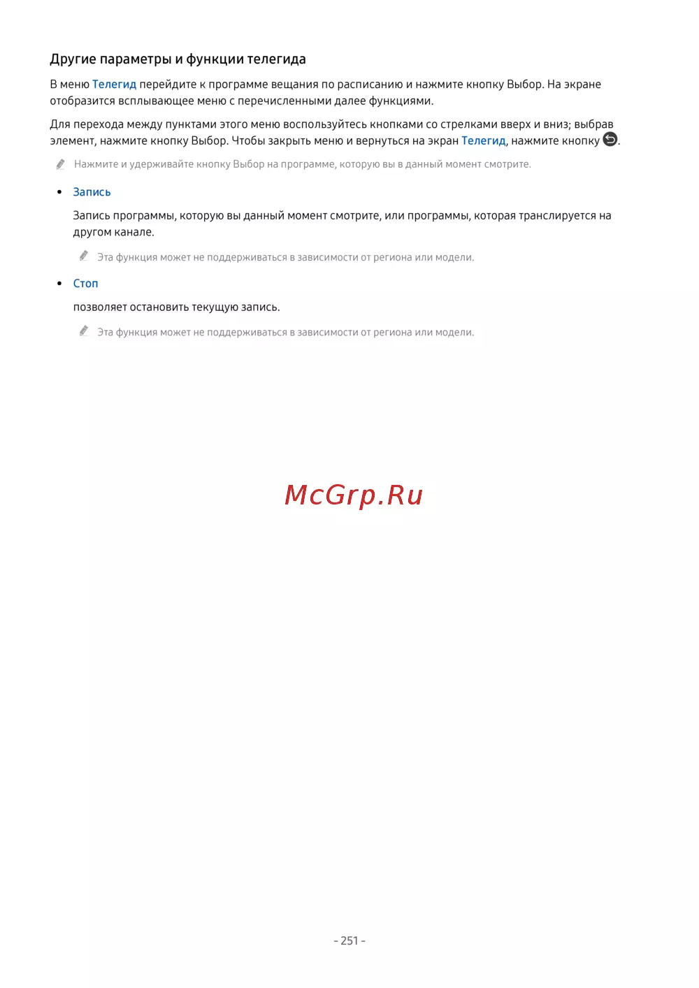 - Другие параметры и функции телегида p.251