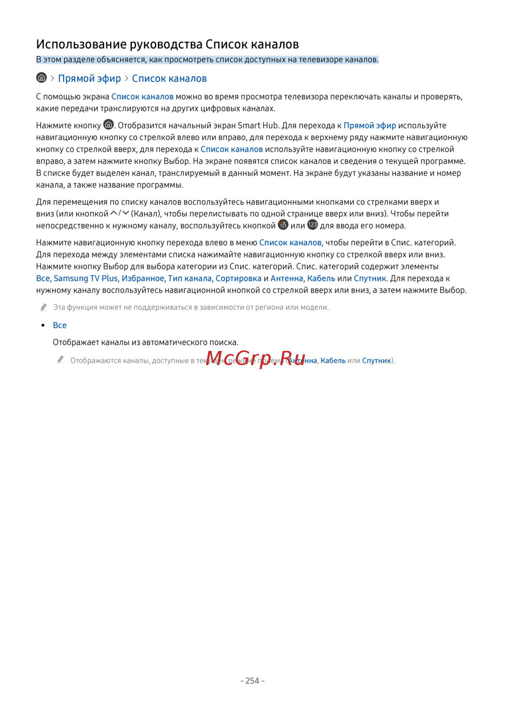 кнопку со стрелкой вверх, для перехода к Список каналов используйте навигационную кнопку со стрелкой