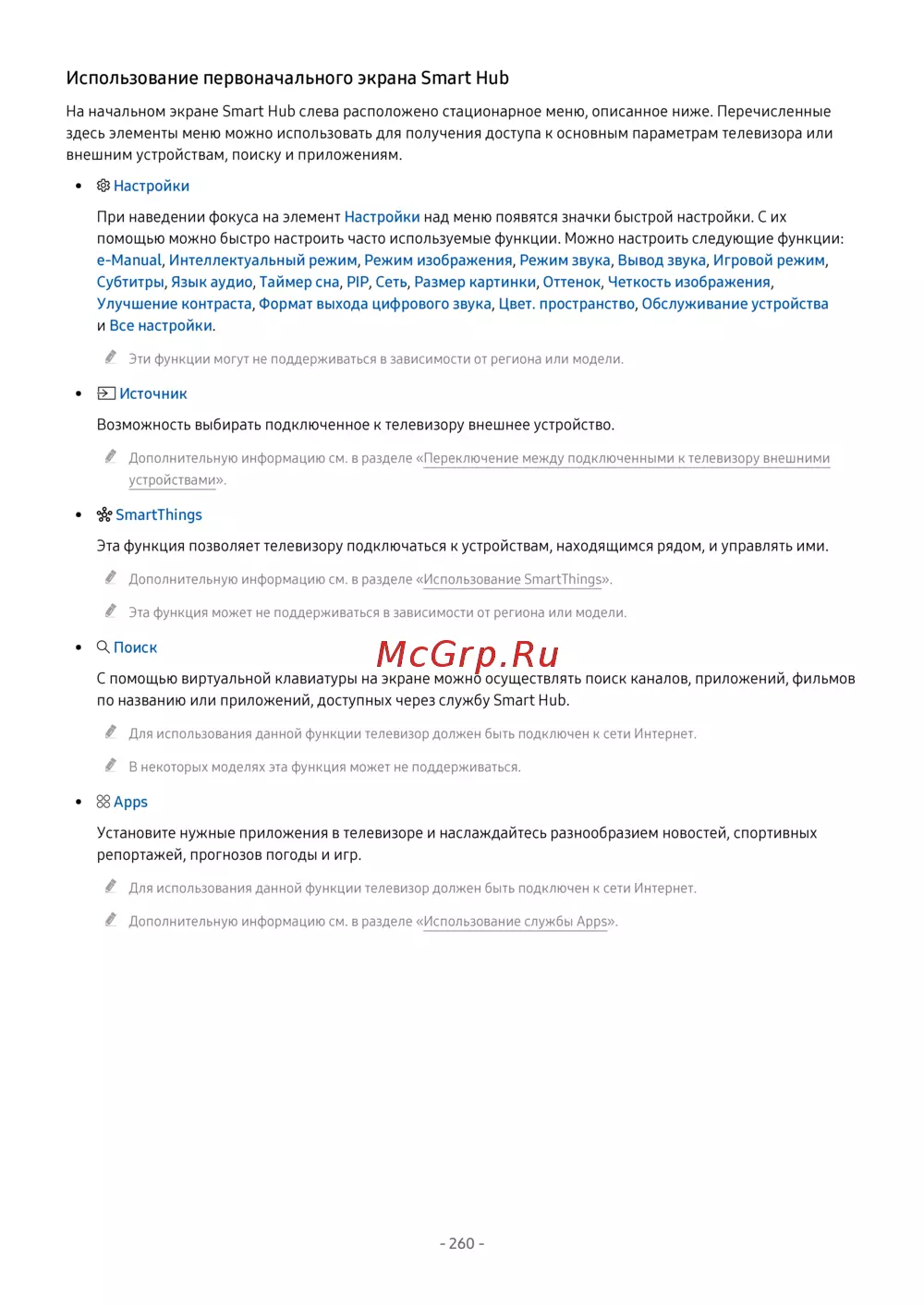 - Вы можете диагностировать проблемы в работе телевизора и службы smart hub и пользоваться функциями восстановления p.203
