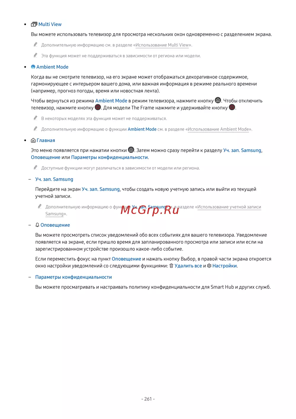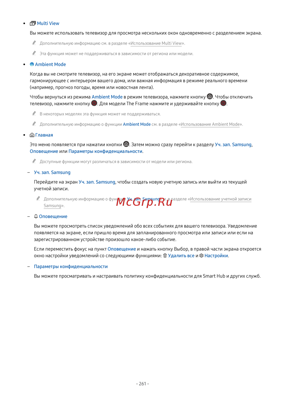 Дополнительную информацию о функции Уч. зап. Samsung см. в разделе «Использование учетной записи