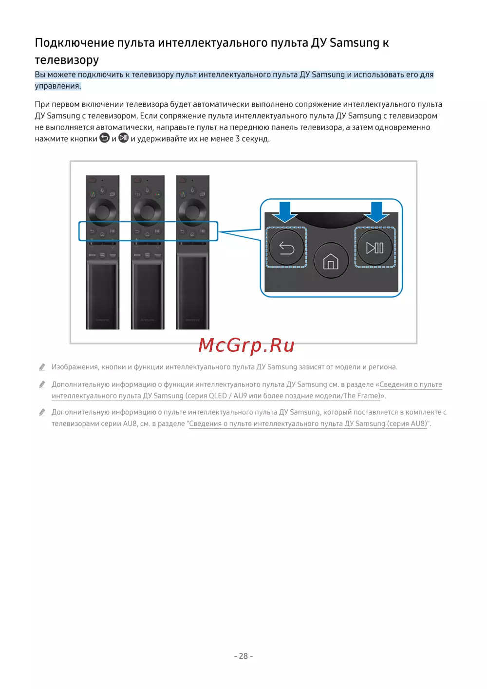 - Описание пульта интеллектуального пульта ду samsung или пульт управления p.241