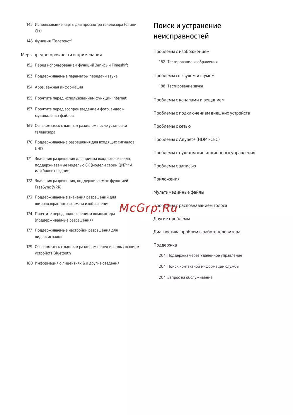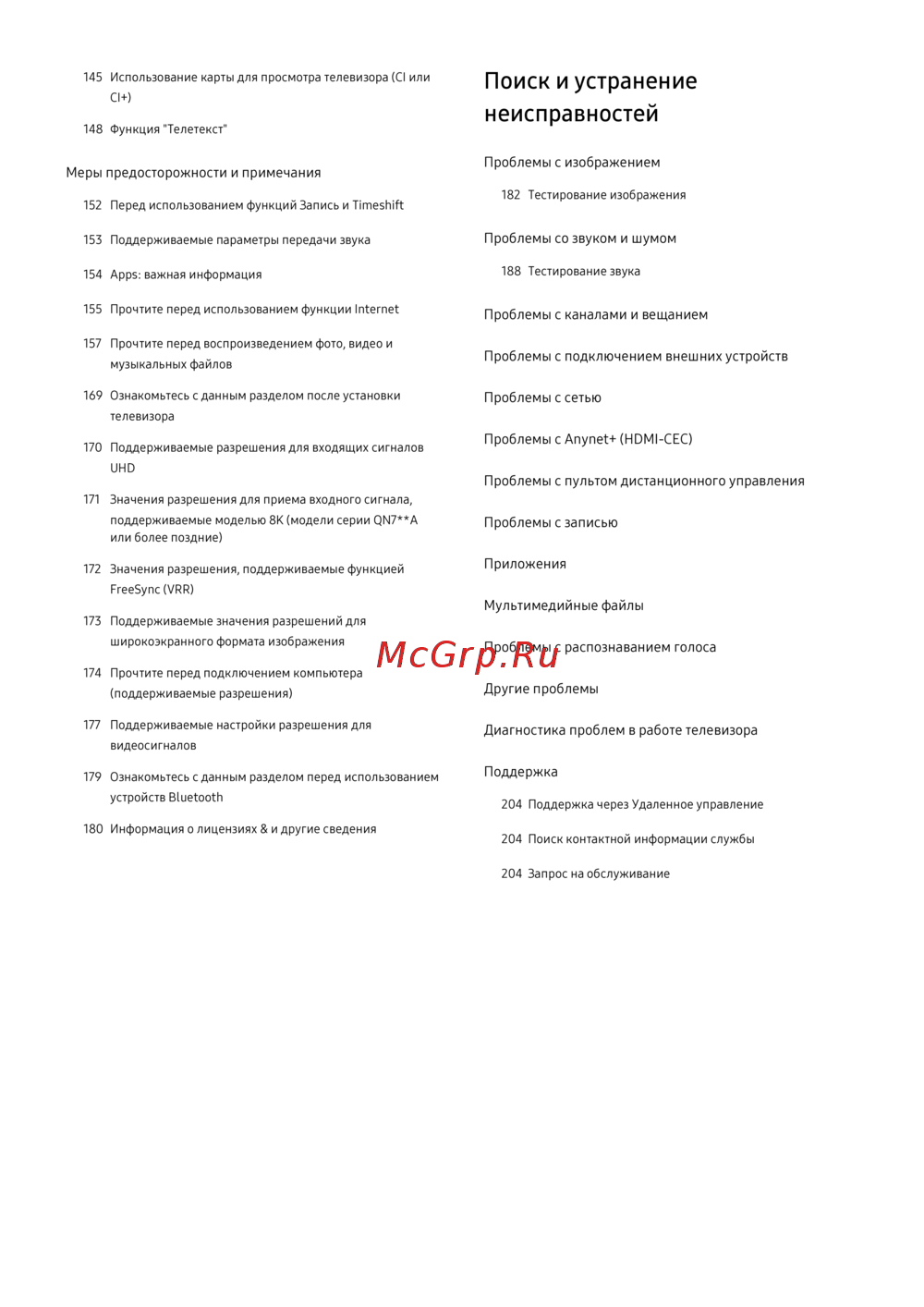 - Вы можете диагностировать проблемы в работе телевизора и службы smart hub и пользоваться функциями восстановления p.203