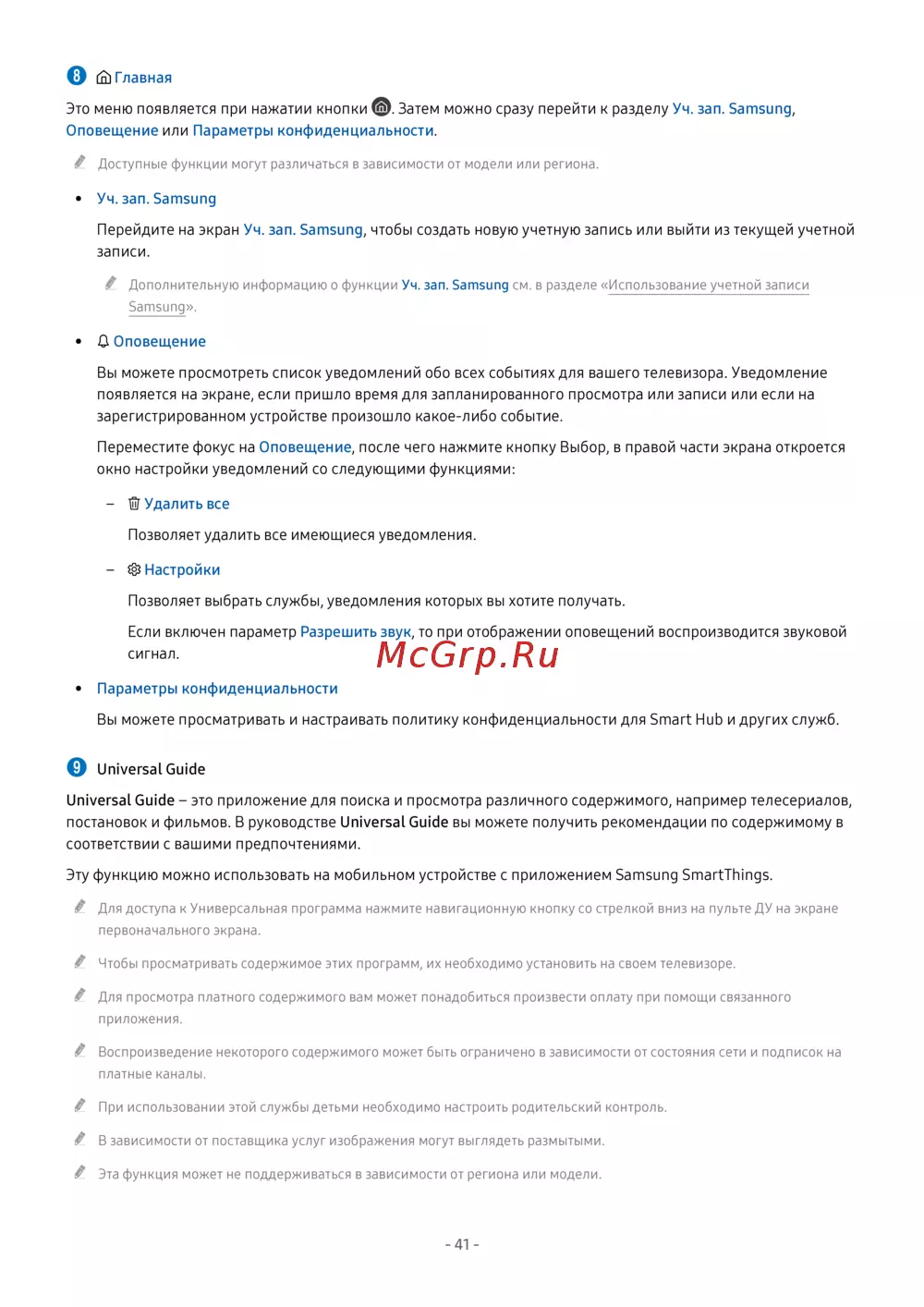 Дополнительную информацию о функции Уч. зап. Samsung см. в разделе «Использование учетной записи