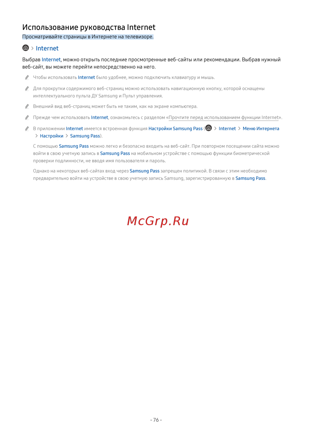 Samsung UE65AU7500U [76/264] Просматривайте страницы в интернете на телевизоре