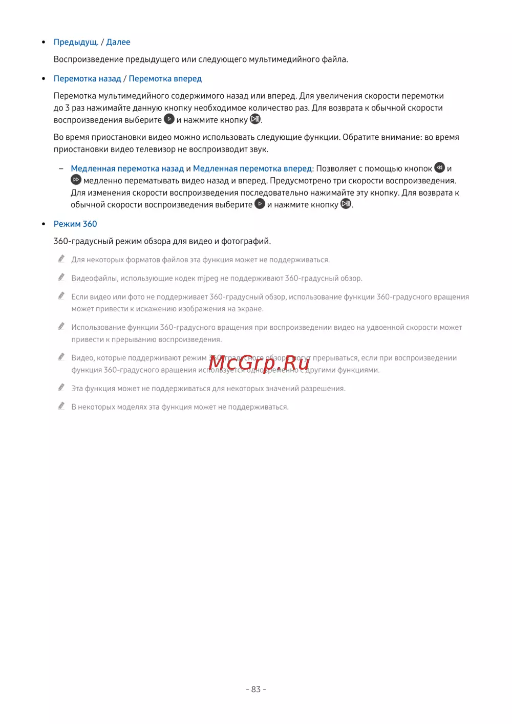Видео, которые поддерживают режим 360-градусного обзора могут прерываться, если при воспроизведении