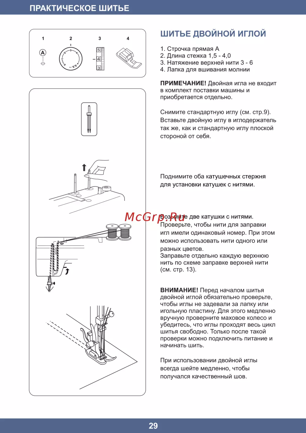ПРИМЕЧАНИЕ! Двойная игла не входит