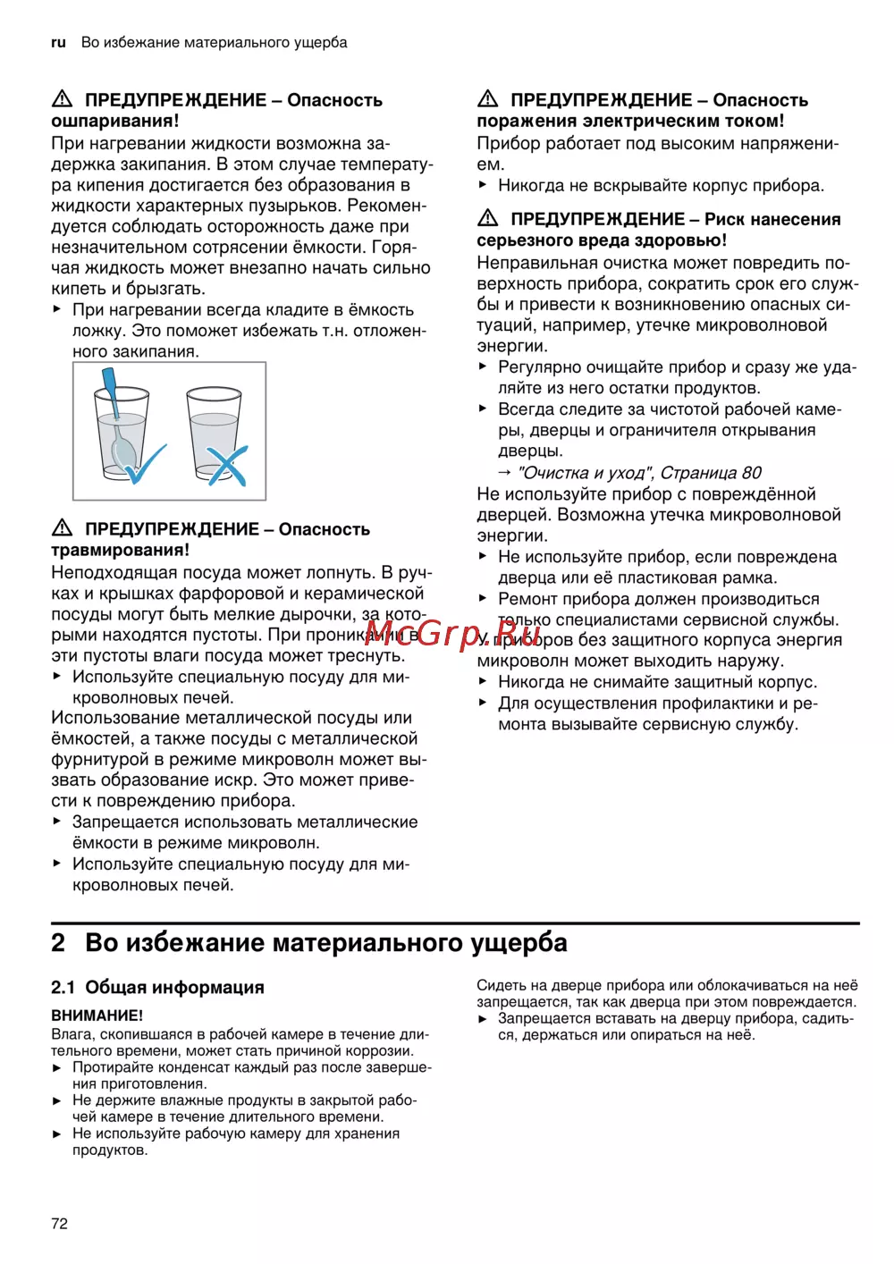 - Принадлежности и посуда для использования в режиме микроволн p.76