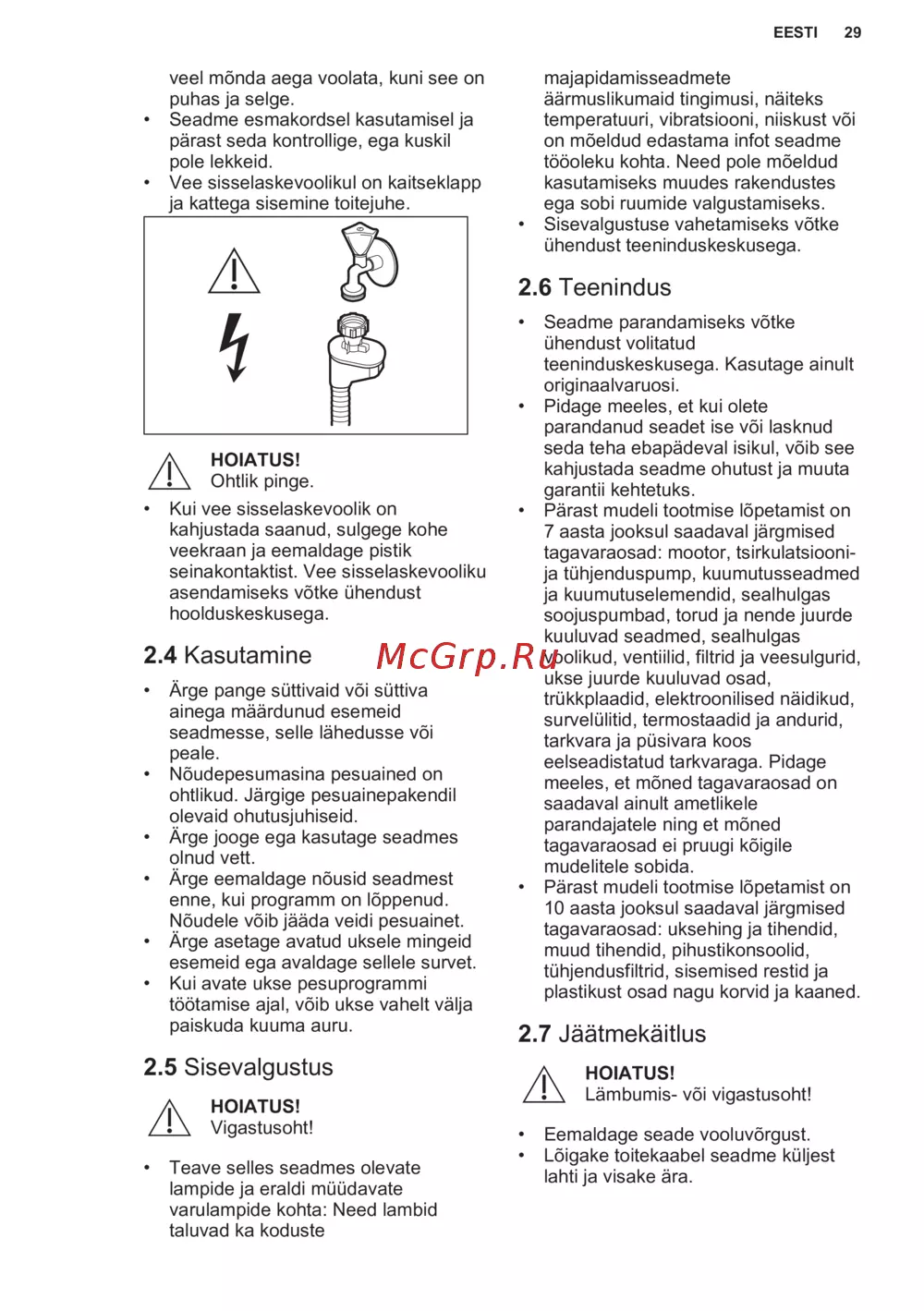 - Seade tuleb veevarustusega ühendada kaasasolevate uute voolikukomplektide abil vanu voolikukomplekte kasutada ei tohi p.28