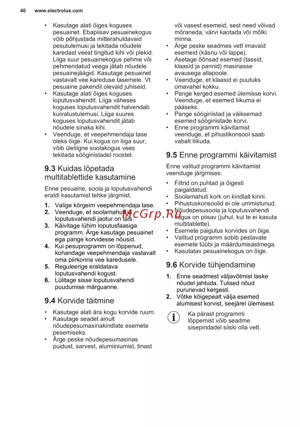 - Pesu ja kuivatustulemused ei ole rahuldavad p.46