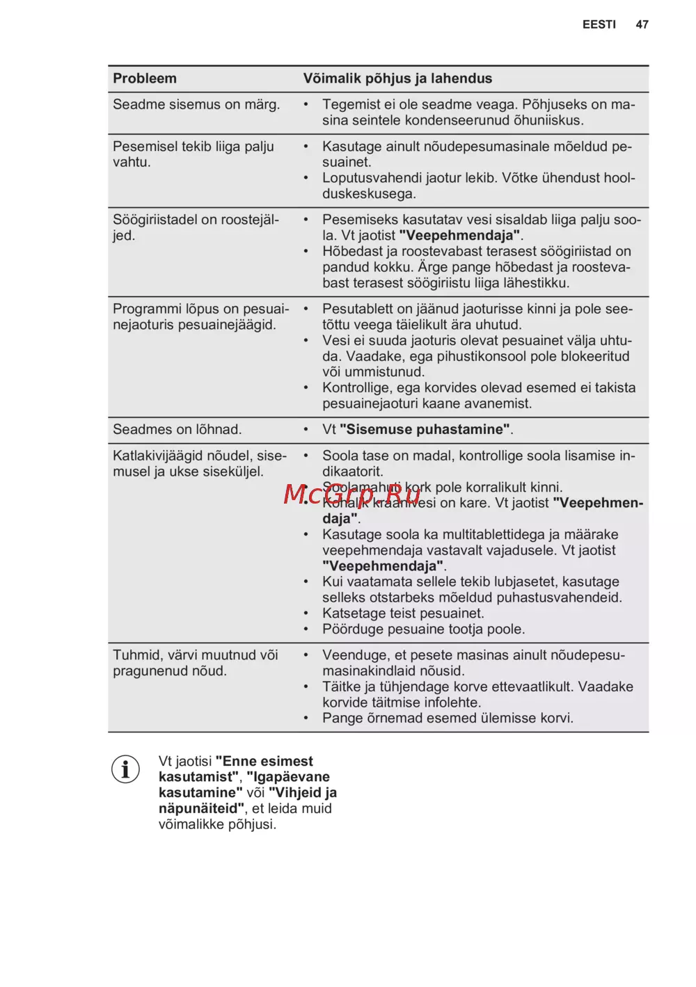 - Pesu ja kuivatustulemused ei ole rahuldavad p.46