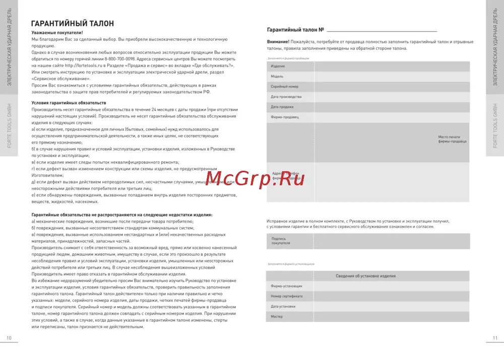 гарантийного талона. Гарантийный талон действителен только при наличии правильно и четко