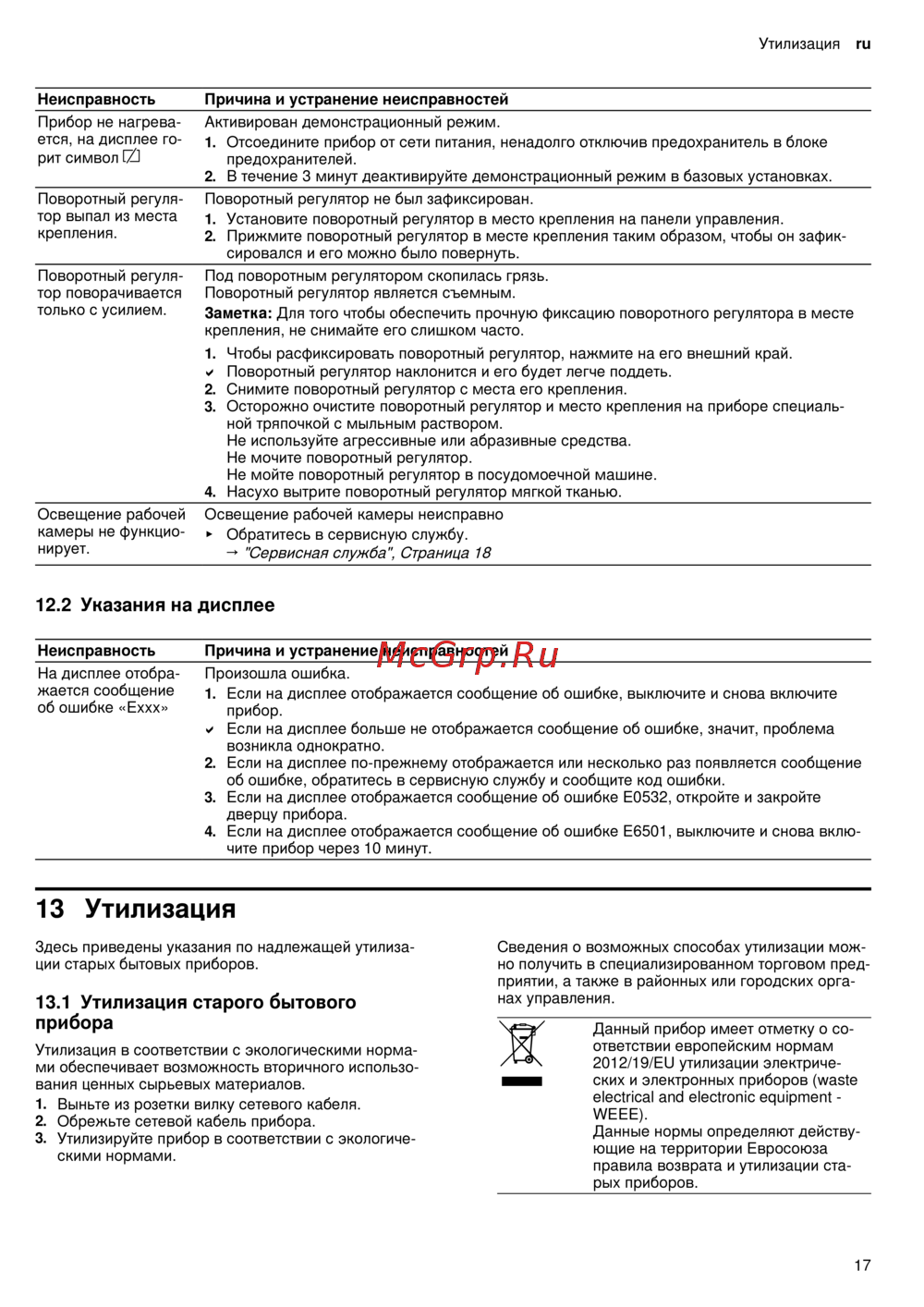 13.1 Утилизaция cтapoгo бытового