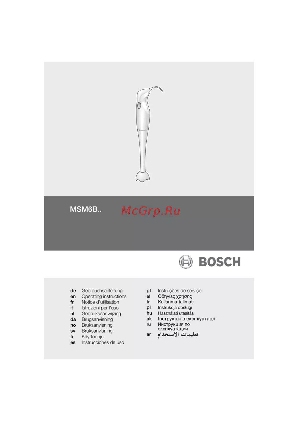 O BOSCH de en fr it ni da no SV fi es Gebrauchsanleitung Operating instructions Notice d utilisation Istruzioni per l uso Gebruiksaanwijzing Brugsanvisning Bruksanvisning Bruksanvisning Kàyttoohje Instrucciones de uso pt el tr Pl hu uk ru ar Instruções de serviço Oõpy Ç ХРПСПК Kullanma talimati Instrukcja obslugi Használati utasítás 1нструкц1я 3 експлуатацп Инструкция по эксплуатации