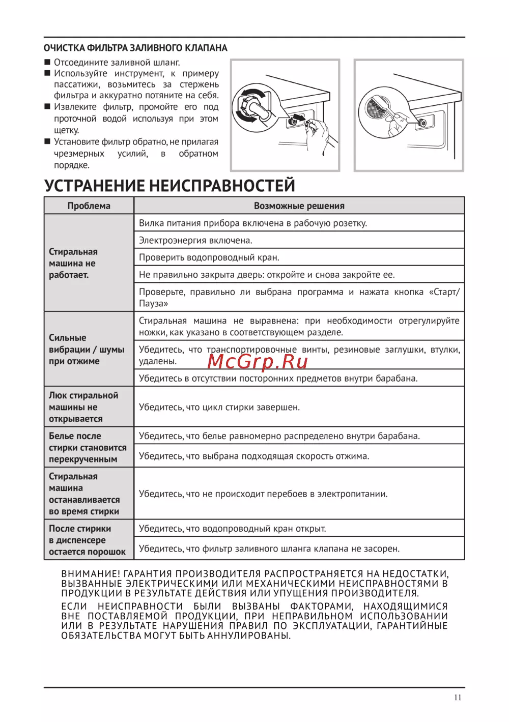 - Проблема с подачей воды при стирке p.12