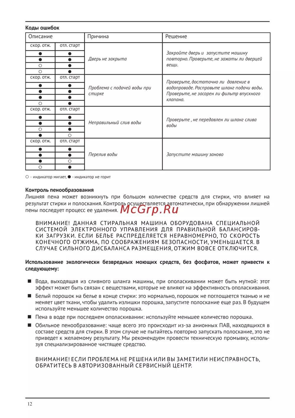 - Проблема с подачей воды при стирке p.12