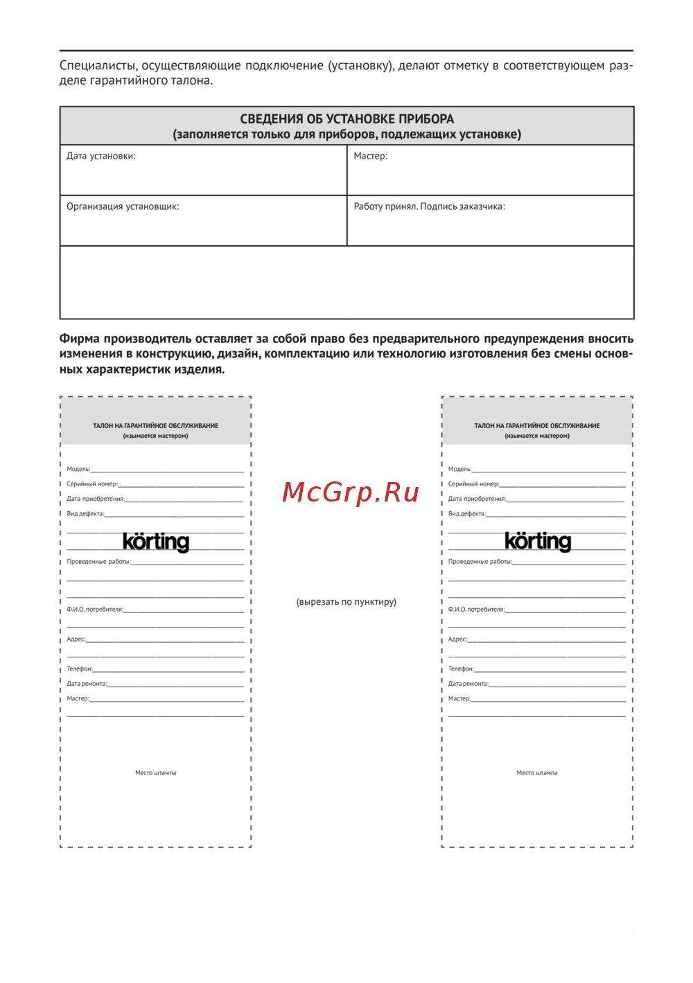 - Специалисты осуществляющие подключение установку делают отметку в соответствующем раз деле гарантийного талона p.21