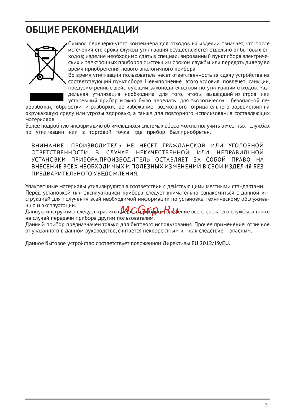 Данное бытовое устройство соответствует положениям Директивы EU 2012/19/EU.