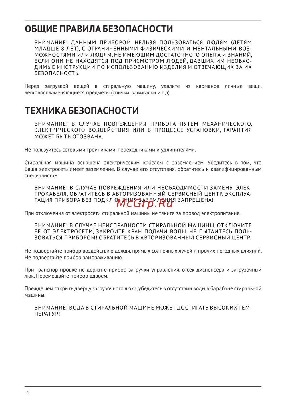 ВНИМАНИЕ! ВОДА В СТИРАЛЬНОЙ МАШИНЕ МОЖЕТ ДОСТИГАТЬ ВЫСОКИХ ТЕМ-