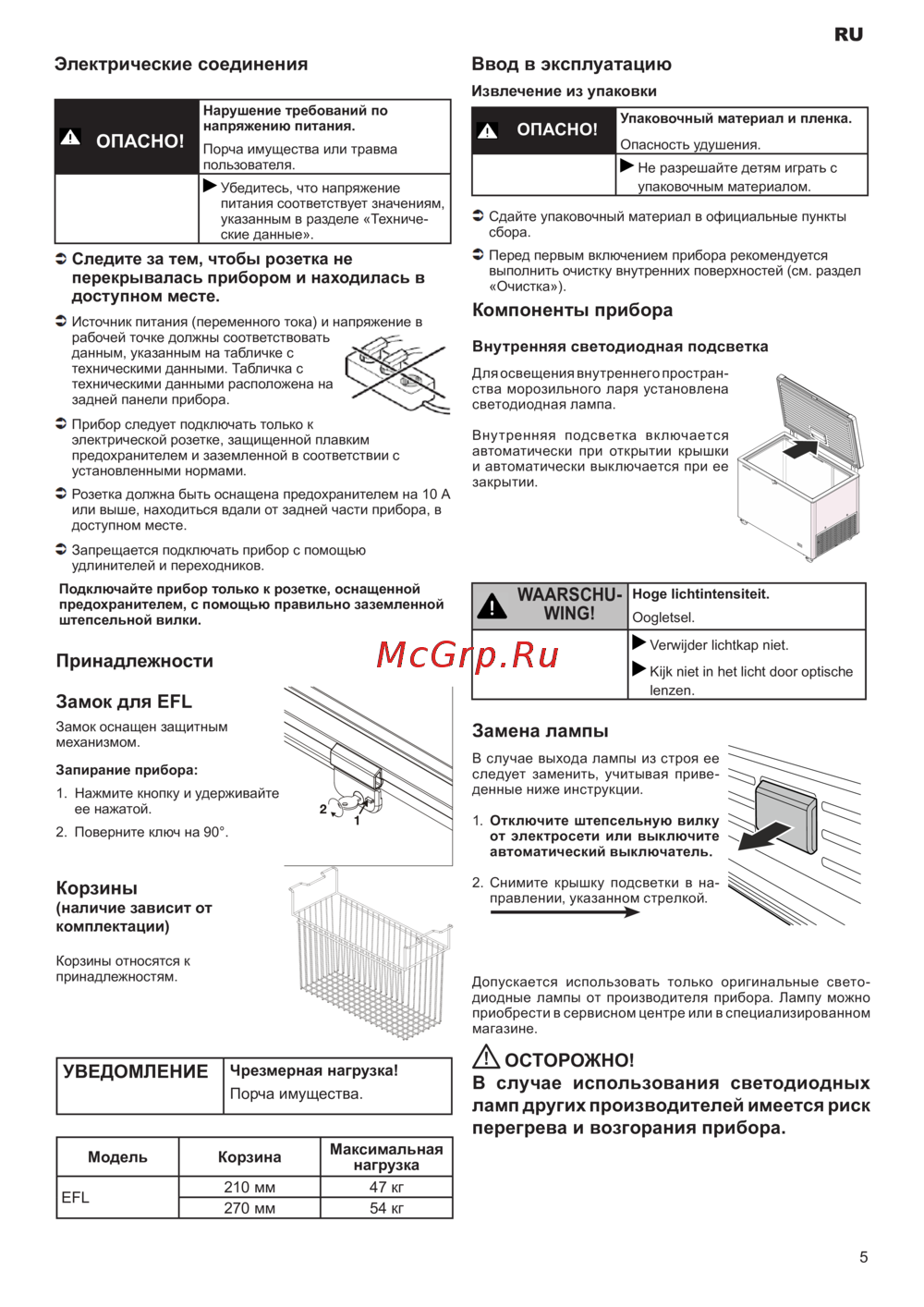 - Одную подсветку для освещения помещения вну тренняя светодиодная подсветка предназначена только для освещения внутренней части прибора p.3