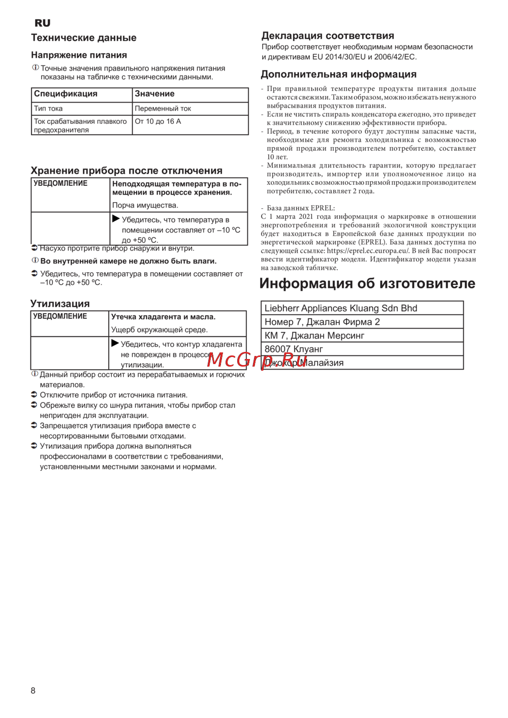 - Данный прибор предназначен исключитель но для хранения и заморозки упакованных продуктов питания в бытовых и аналогичных условиях например к таким условиям отно сится использование p.3