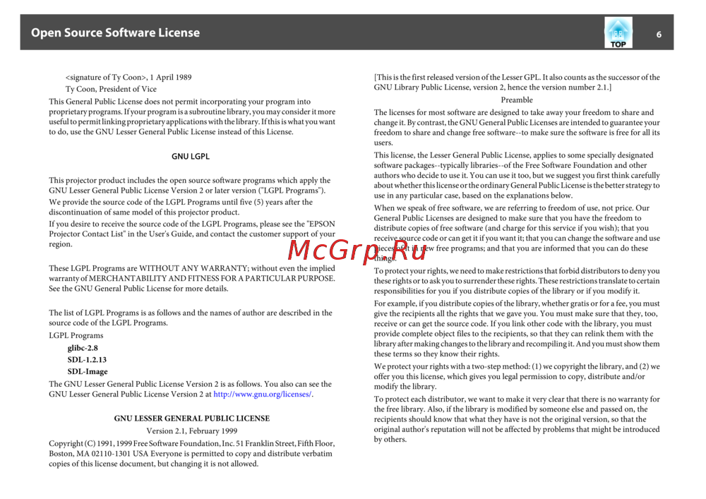 Epson EB-1761W [6/27] Open source software license